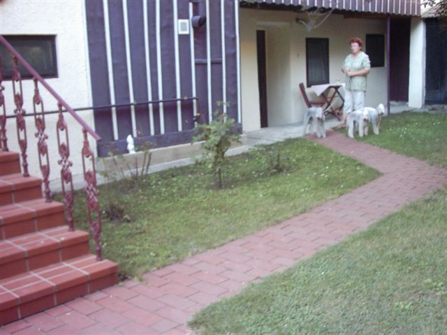 Hier haben wir Bedlingtons mit unseren Zweibeinern gewohnt - ein kleiner Garten im Innenhof direkt vor unserer Tür. |