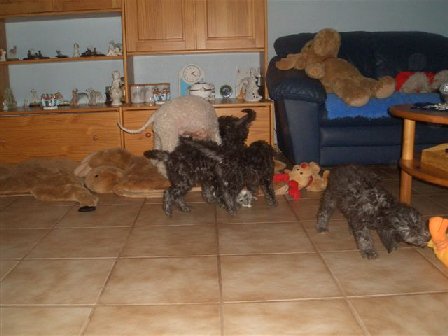![]() Mari ist eine sehr gute Mutter und versorgt ihre Welpen liebevoll! |