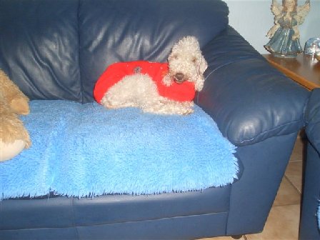 ![]() Oksanna findet es so richtig nett im Hundebett! |
