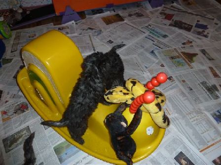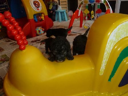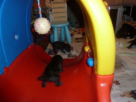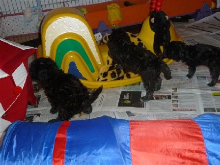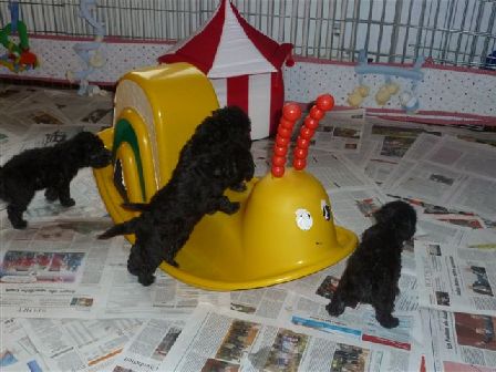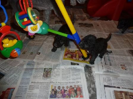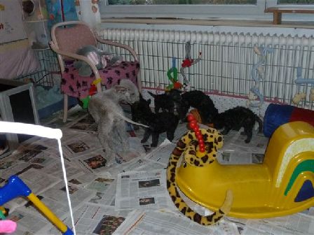 Die kleine Rasselbande ist nun 5 Wochen alt. Eine schöne und wichtige Zeit beginnt nun. Die kleinen Racker lernen jetzt jeden Tag etwas Neues . | |