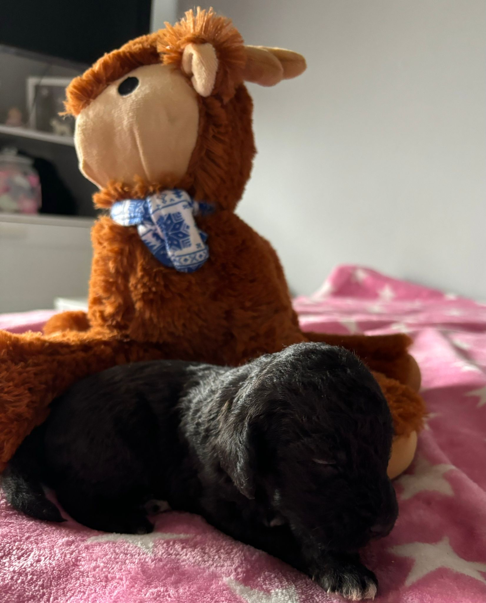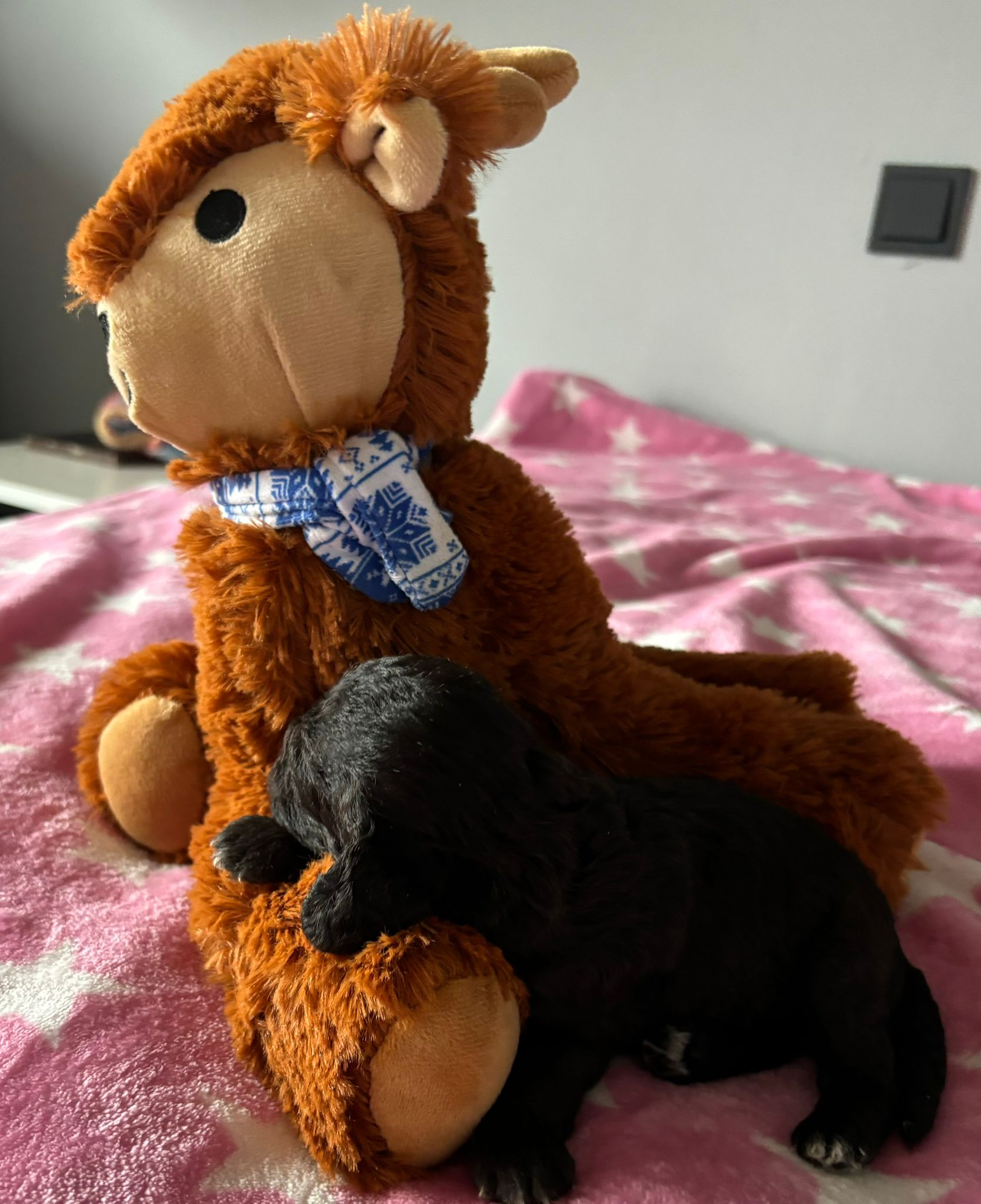 Die Geburt ihrer Kindes geben bekannt: Multichampion Franziska vom Orkelsfelsen - DNA: N/N und Multichampion Plumeria‘s Black Durgon DNA: N/N Wir freuen uns sehr